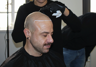 纹发师开始设计自然发际线,通常定好位后,头上会留有一条笔墨描画的条纹,硬线规划好了前额过渡虚点的位置,然后操作时,会使用针头首先把这条线复制下来,然后擦拭多笔墨痕迹,后续再根据这条线条规划色点过渡走向,和色阶的选择。这样自然的发际线就诞生了。想知道更多纹发技巧,浏览重庆纹发资讯。